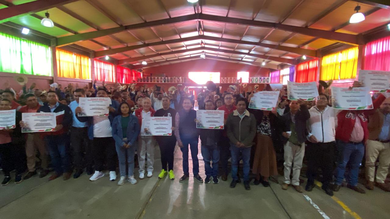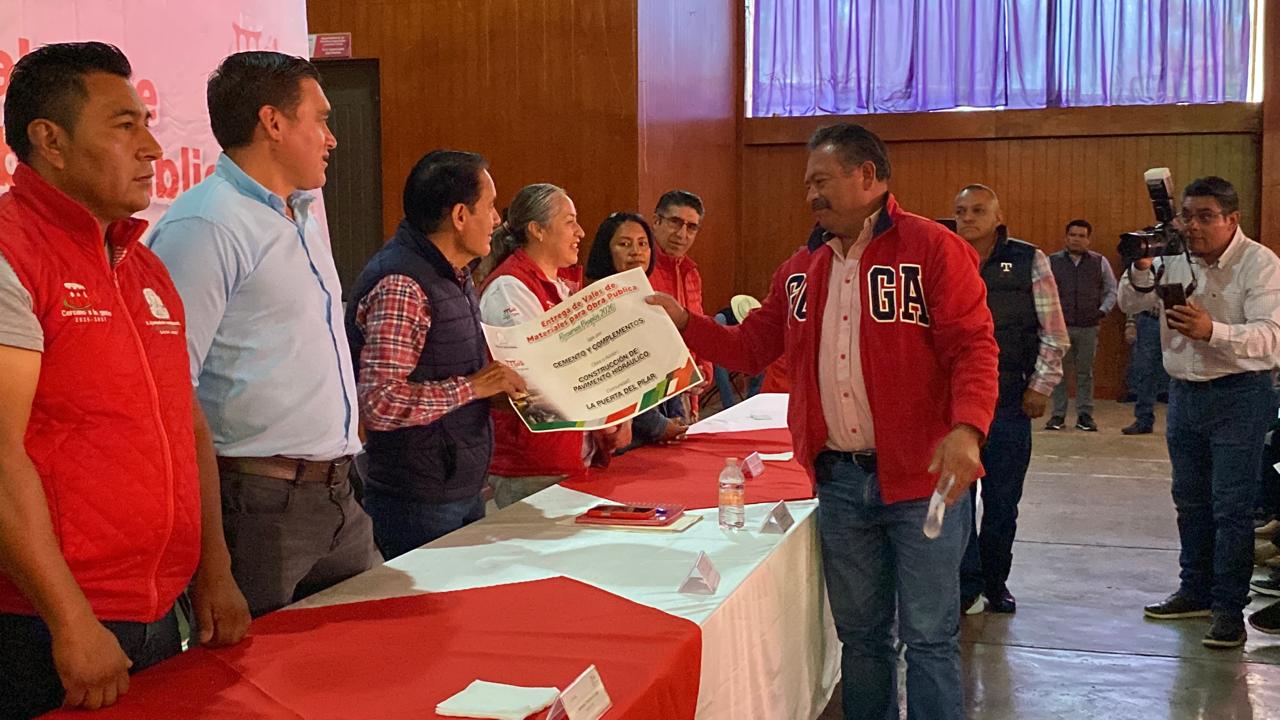 Destacó que la entrega de 800 toneladas de cemento y agregados facilitarán la ejecución de proyectos locales enfocados en educación, espacios públicos y vialidades, bajo un enfoque humanista y de participación directa, y en la que la población será responsable de la mano de obra.