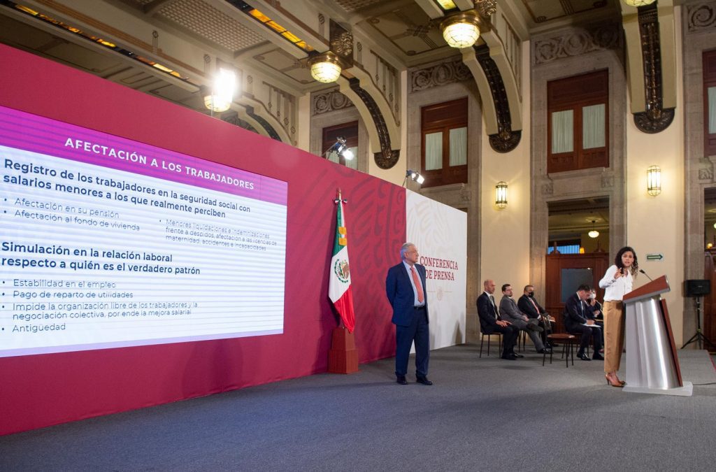 Acompañado del gabinete hacendario y laboral, el presidente Andrés Manuel López Obrador explicó que el outsourcing se ha utilizado para incentivar la defraudación fiscal y al mismo tiempo afecta los derechos laborales de los trabajadores.